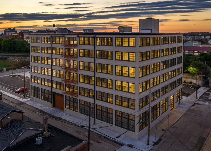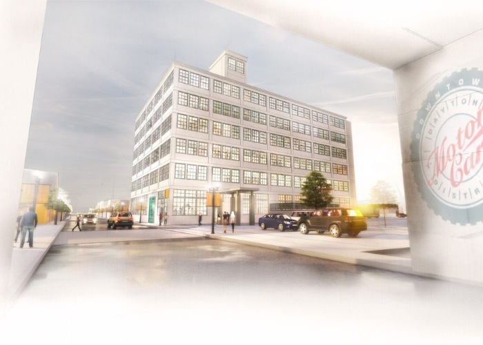 Six-story building, just east of the Oregon District featuring modern offices for high-tech, creative design and other firms and users.